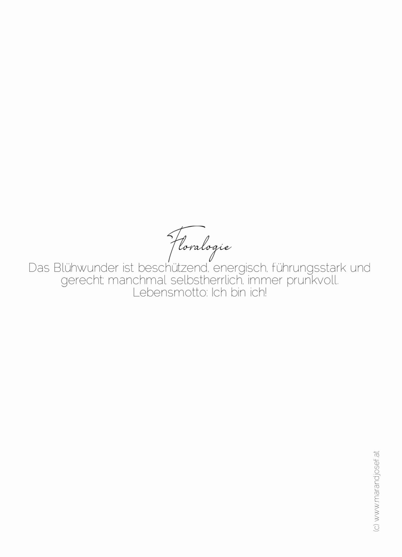 Das Blühwunder ist sorgsam, energisch, führungsstark und gerecht; manchmal selbstverliebt, immer prunkvoll.